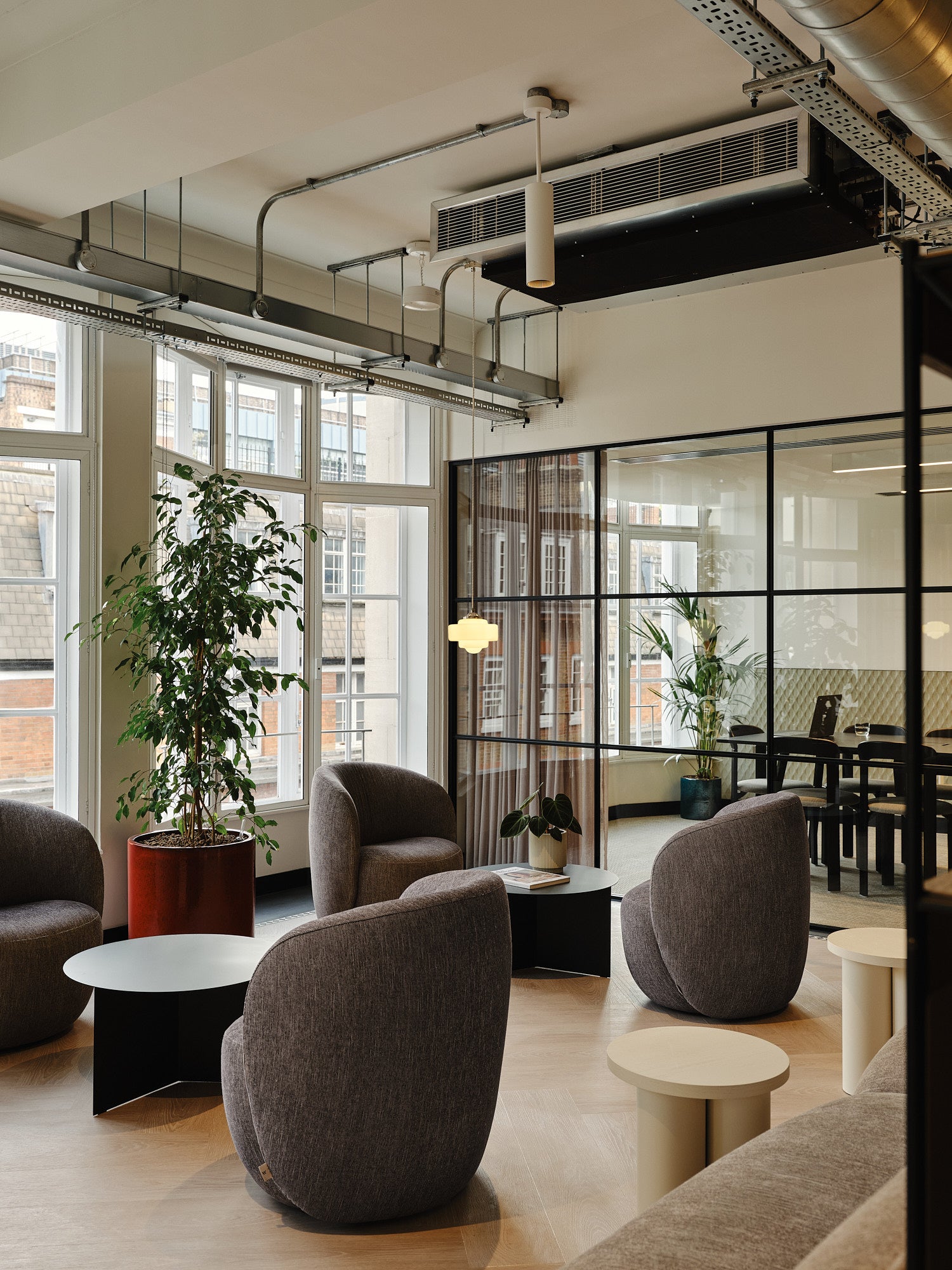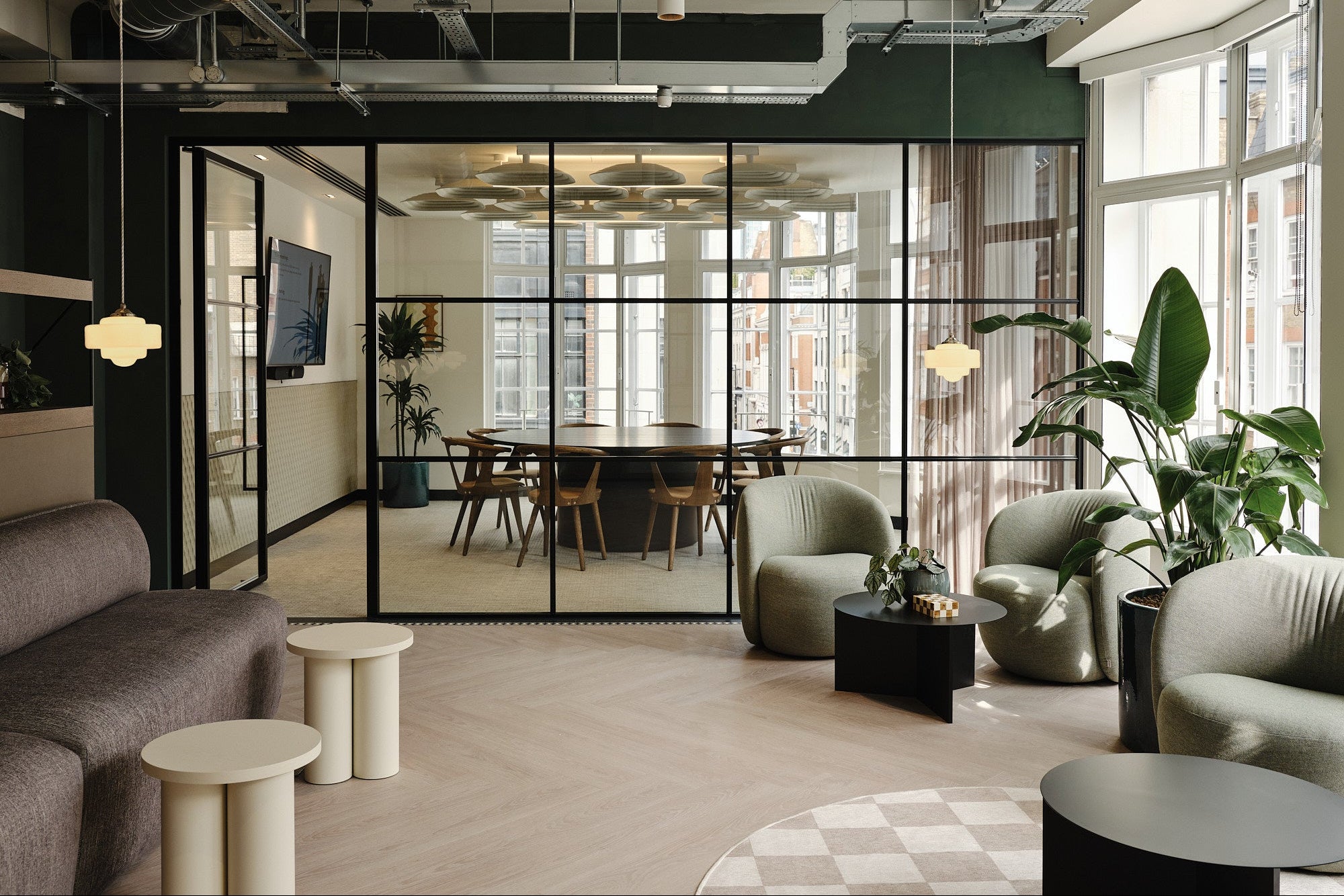 Set within the renewed Art Deco setting of 141 Wardour Street in Soho, London, the interior by BGY ID brings together flexible work zones, shared lounges, and kitchen areas that support a wide range of working styles.
