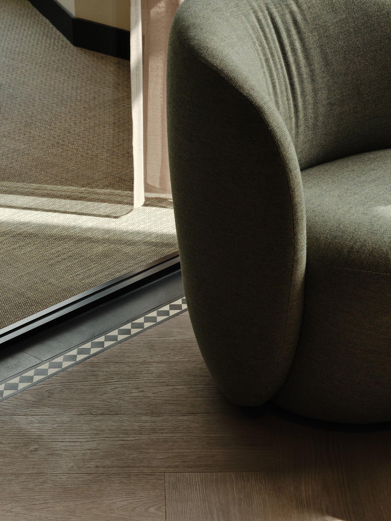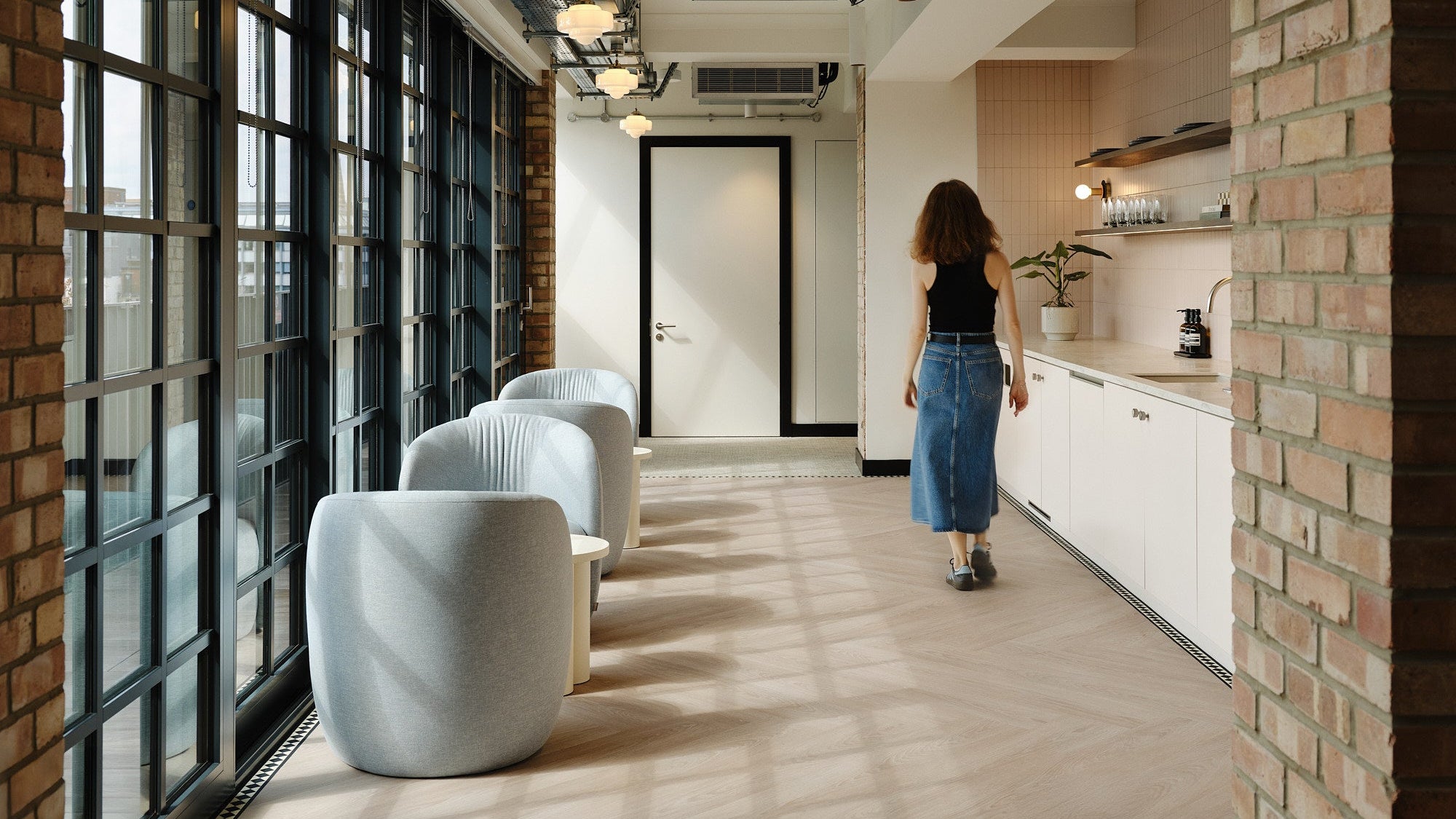 The chairs sit naturally within the building’s blend of heritage character and modern functionality, adding a touch of warmth to an environment designed for daily use and long-term adaptability.