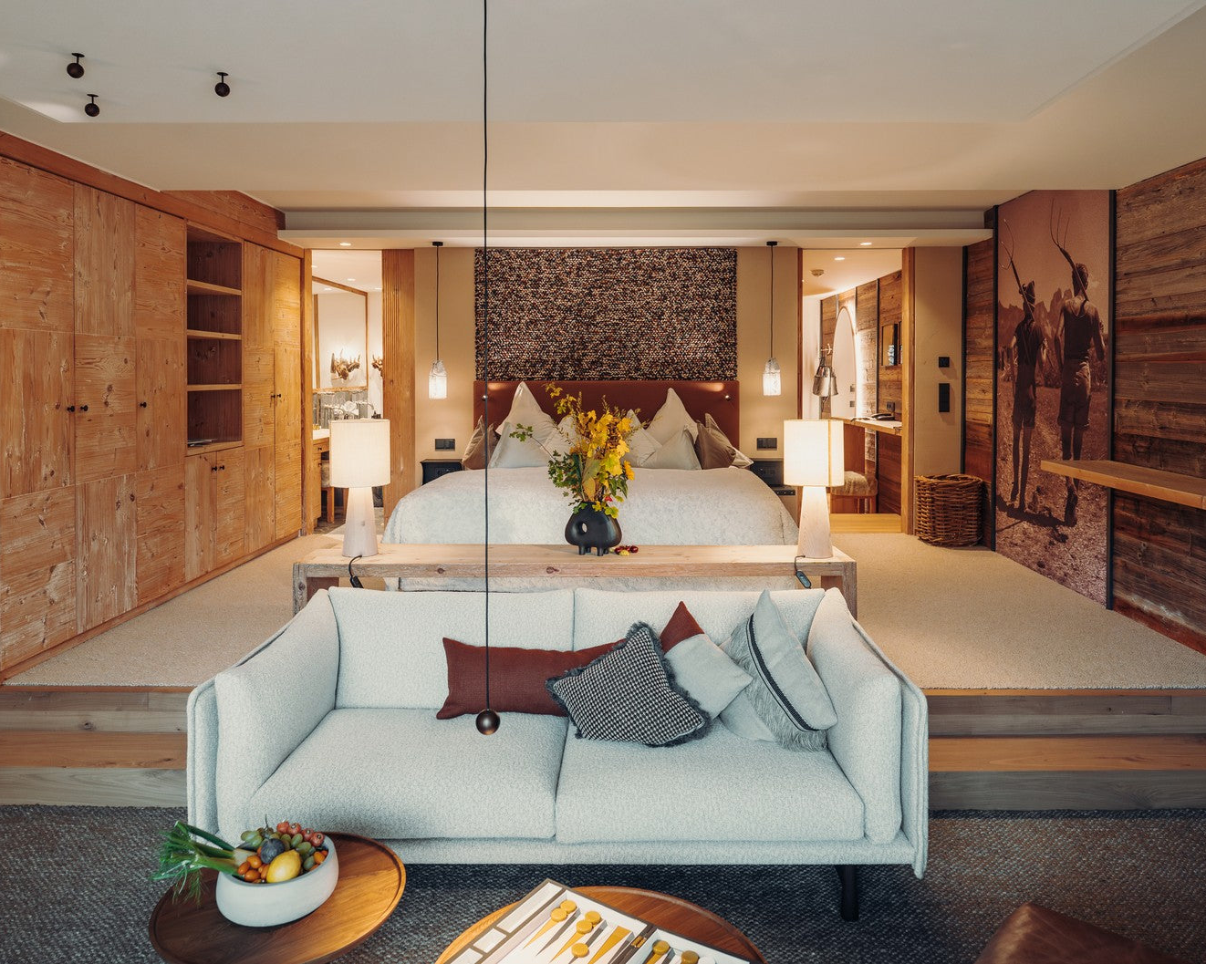 In the guest suites, the Kite Sofa adds an element of understated elegance, blending seamlessly into the tranquil setting that characterises the hotel's modern Alpine retreat.
