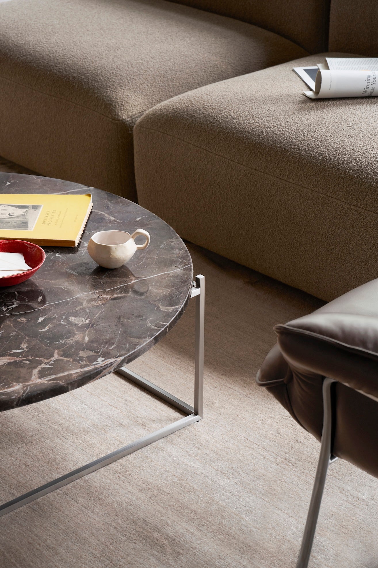 With its circular top, seemingly hovering above the delicate frame, the Circle Table is a design that exudes enduring elegance, enhanced by an exclusive marble tabletop. Available in three sizes, the Circle Table makes a striking focal point in larger lounge settings or as a sophisticated side table in more compact spaces.
