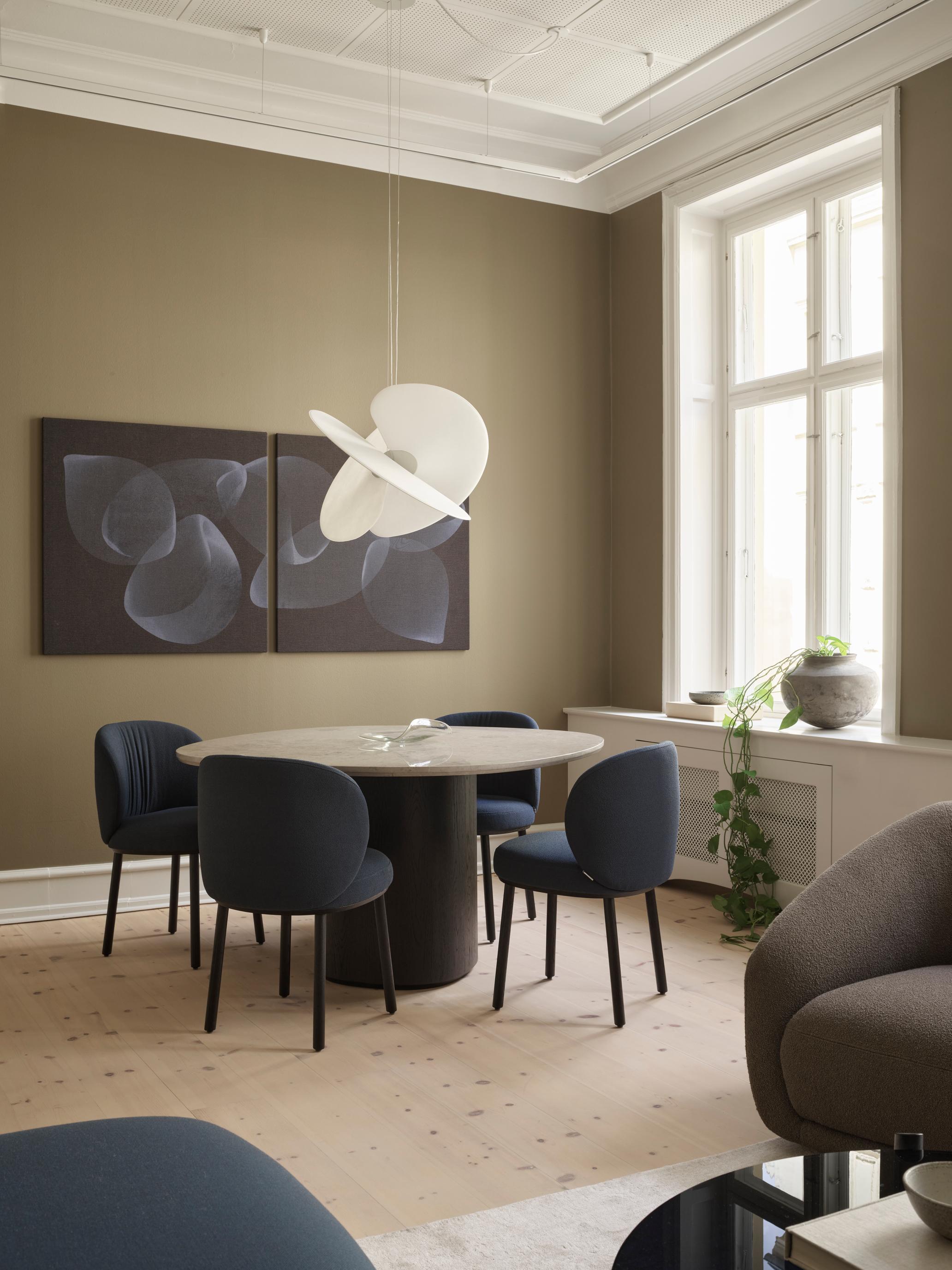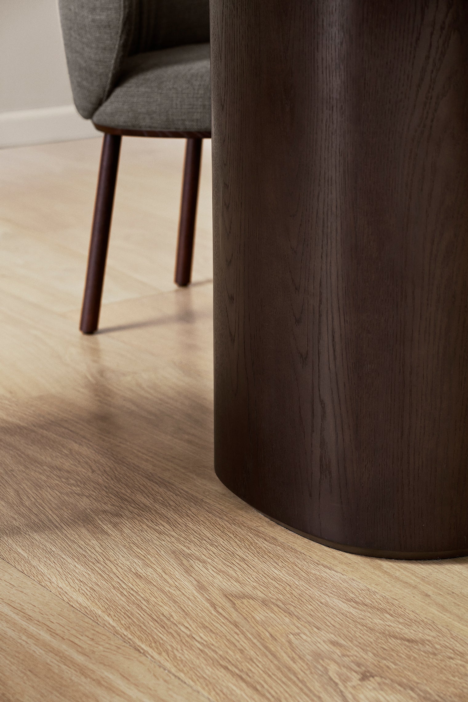 The centre-aligned column base as well as the generously sized tabletop leave plenty of room for up to six Ovata Dining Chairs, though the table works equally well with other seating styles and finishes.