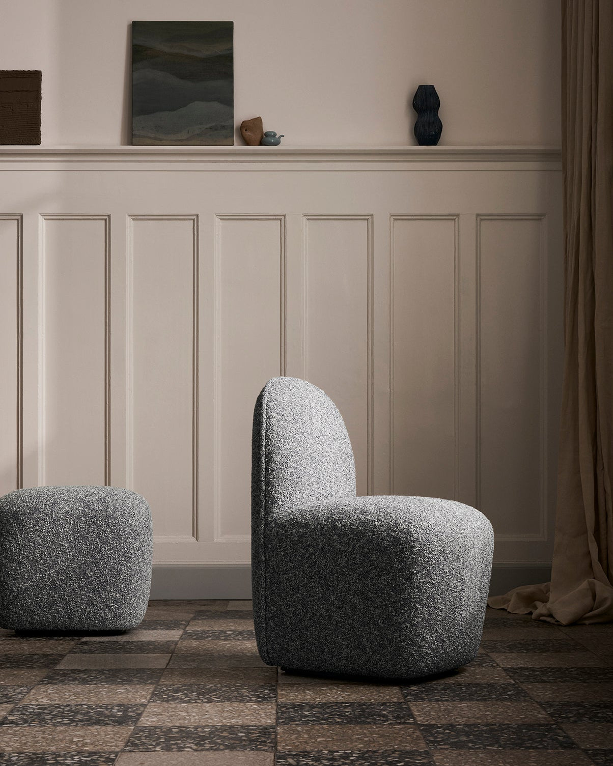The compact chair and pouf boast petite proportions, creating a minimal footprint and a visually lighter sentiment. Whether integrated with other Panorama designs for creative seating arrangements or used independently as side or guest seats, they prove especially fitting for more confined spaces, such as smaller hotel rooms.